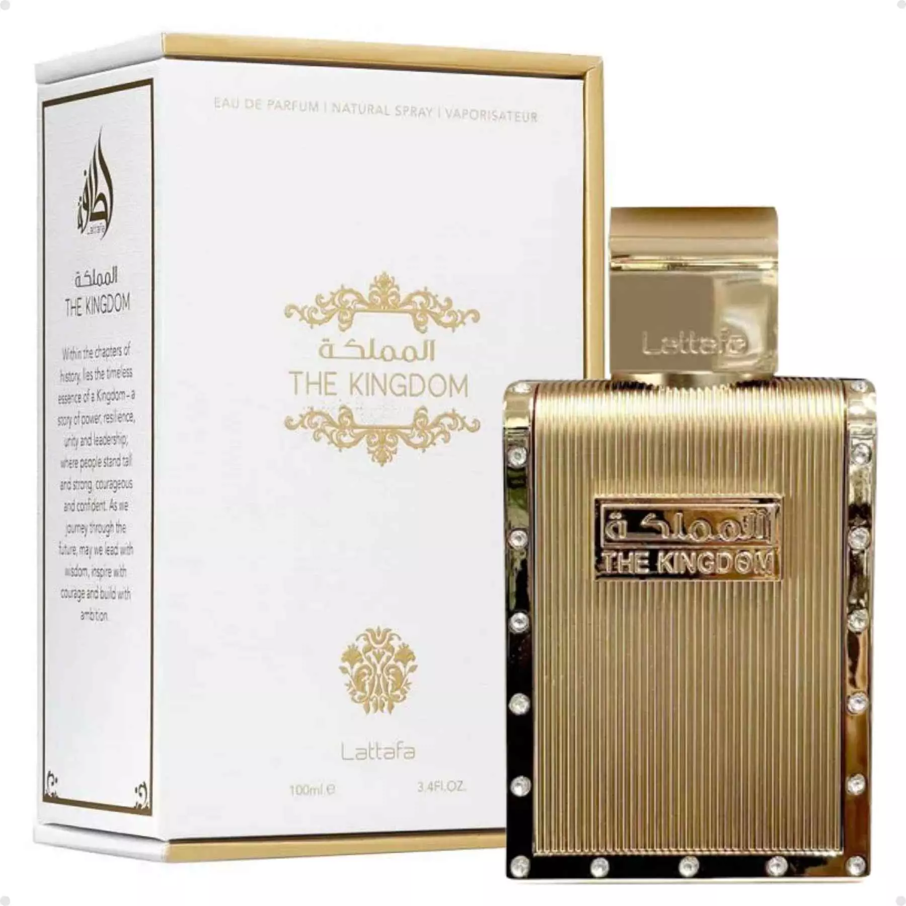 O The Kingdom de Lattafa Perfumes é um perfume masculino aromático lançado em 2024, desenvolvido para homens que buscam uma fragrância marcante, moderna e sofisticada. Sua composição equilibra frescor aromático, notas adocicadas e um fundo quente e envolvente, resultando em um aroma elegante e de forte presença.